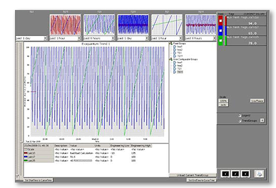 Exaquantum/AutoTrend provides system-wide real-time and historical long term trending that is tightly integrated to the Centum DCS to both operators and management. The AutoTrend package allows DCS operators to open pre-configured trends right from their HIS station and provides an effective interface for configuring and managing both trends and reports. Custom controls are available to make tasks more convenient and user experience is enhanced significantly by providing easy-to-use trend display manipulation, one-click switching between trends and report generation option for Microsoft Excel and Word. Users can quickly create trend groups by dragging and dropping tags (data points) from the tag hierarchy tree.