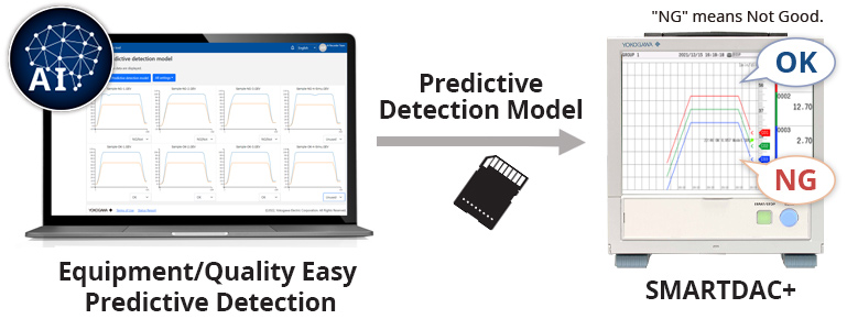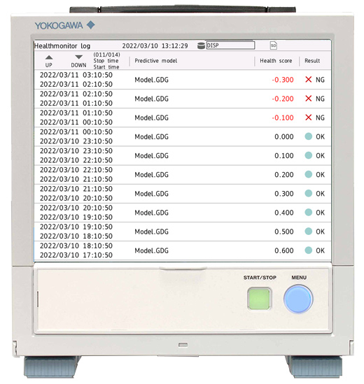 很容易从过去录入的 ok/NG数据生成预测检测模型并加载GX/GP后,你就能及早检测出制造设备异常和产品质量退化预测健康分数显示常态和异常数据程度时会考虑多数据间的相关性来判定,因此它们能捕捉出人类难以检测的异常预测