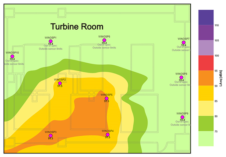 基于WN30制作的最新噪声图,工人们可以评估工厂内将接触的实际噪声水平。视噪声水平而定,工人可采取必要措施,如规划最优工作日程并使用适当的听力保护HSE管理员和工厂管理员可依据最新噪声水平审核并批准工作进度表