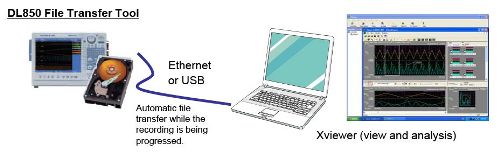 | DL850文件传送工具 | 数据文件在长段连续硬盘记录DL850序列时自动传送到PC |