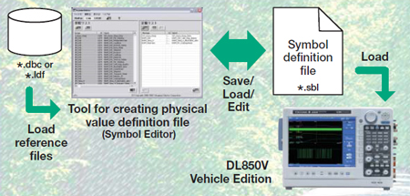 DL850V运量编程使用CAN总线模块(722040)或CAN & LIN总线模块(72241(*1))可显示CAN-和/或LIN-协议通信数据为显示趋势波也可以触发解码波形通过识别车辆安装局域网通信数据与电压、温度和传感器信号或ECU控制逻辑信号等模拟数据之间的相互关系,车辆总体局域网系统可以评价此外,用/DC选项,DL850V除普通AC功率外,还可以用像汽车电池等DC功率驱动