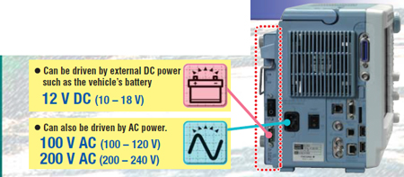 DL850V车辆版可用12VDC电池、车辆打火机或普通AC电源驱动向DC开机提供配件可见目录尾端附件列表 。 )