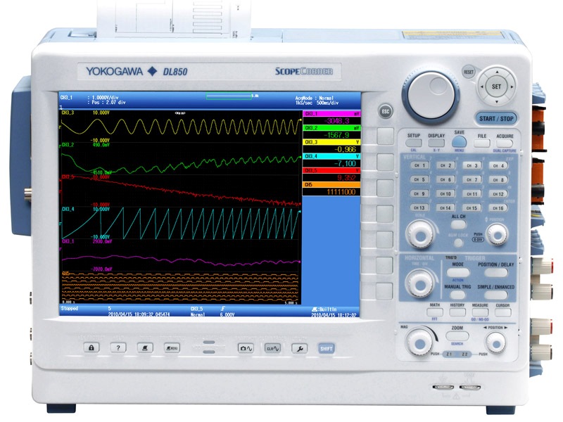 16-CH电荷输入模块(scanner类型*)可测量10ks样本率,即使使用所有16个通道模块填充所有8个输入模块槽后DL850执行128-CH电压测量